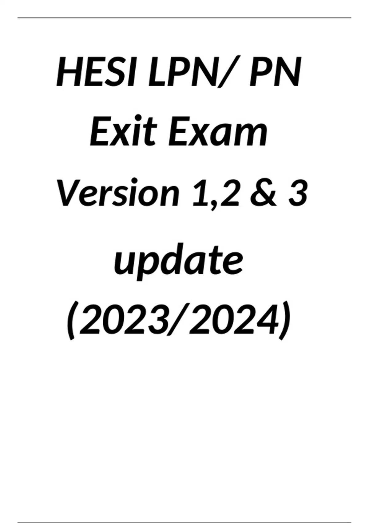 HESI LPN/ PN Exit Exam Version 1,2 & 3 update (2023/2024)