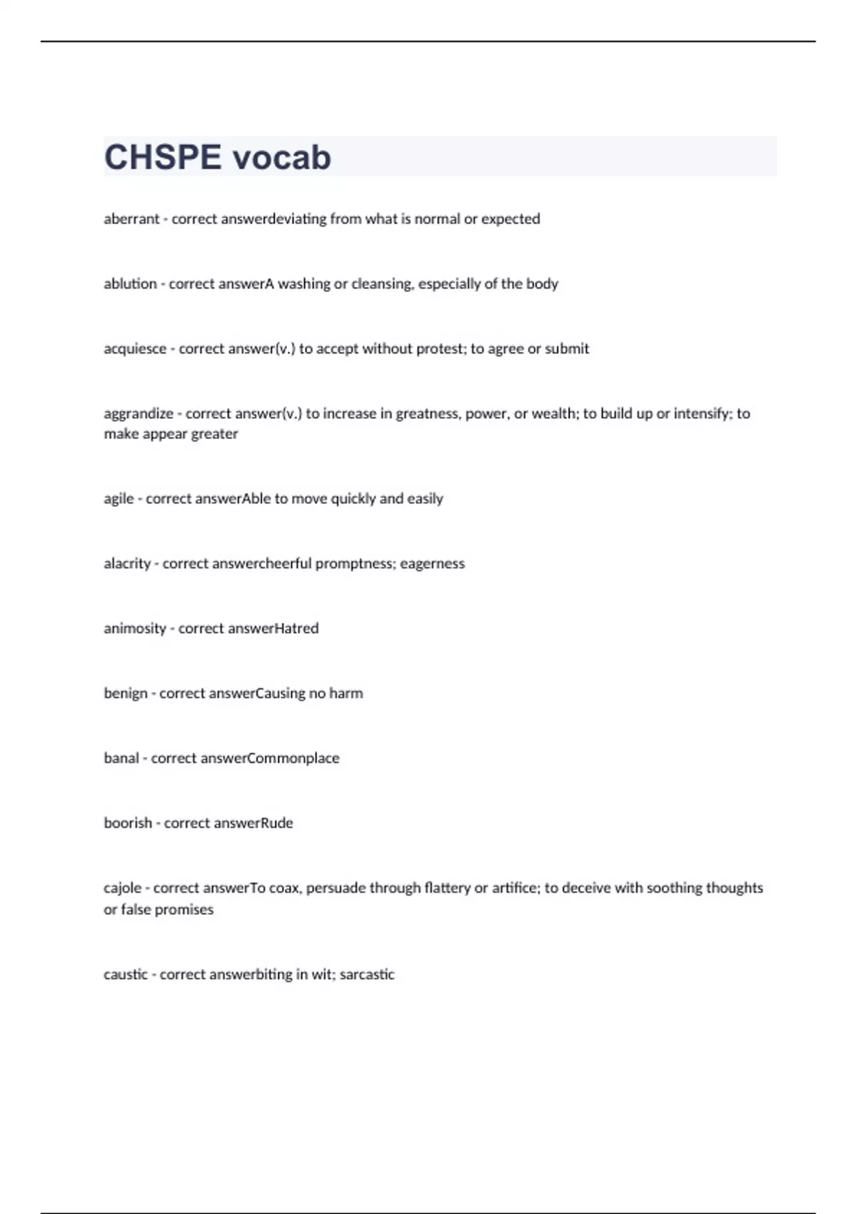 chspe exam 2023 with 100 correct answers