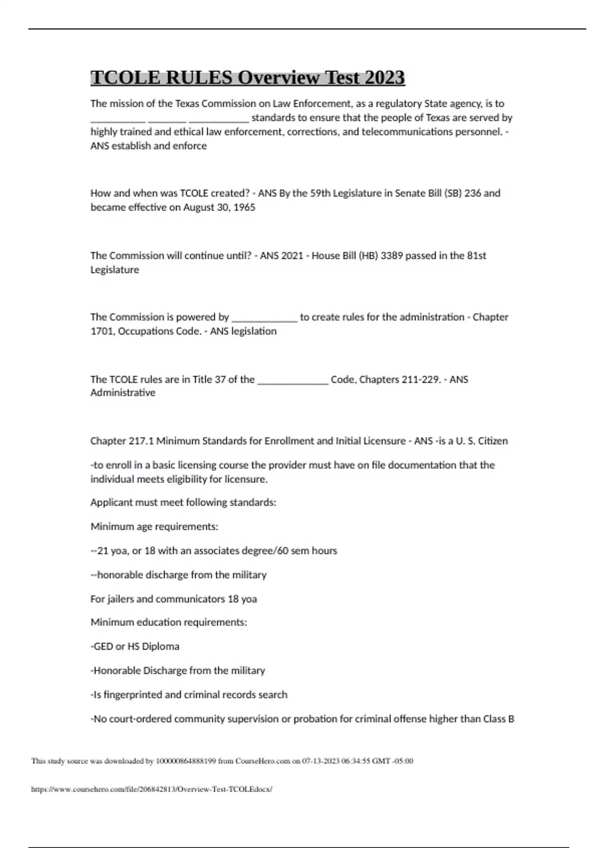 TCOLE RULES Overview Test 2023.