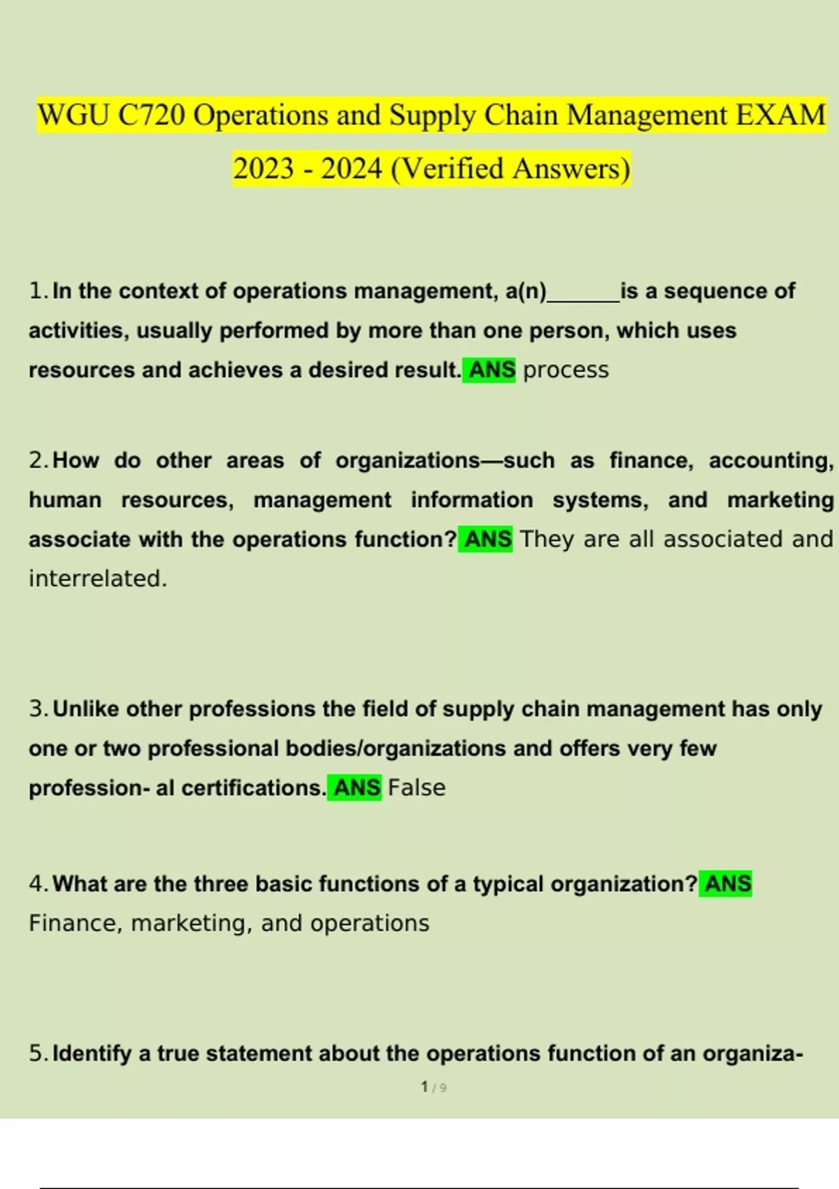 WGU C720 Operations and Supply Chain Management EXAM STUDY BUNDLE 2023 - 2024 (COMPLETE PACKAGE)(Verified)