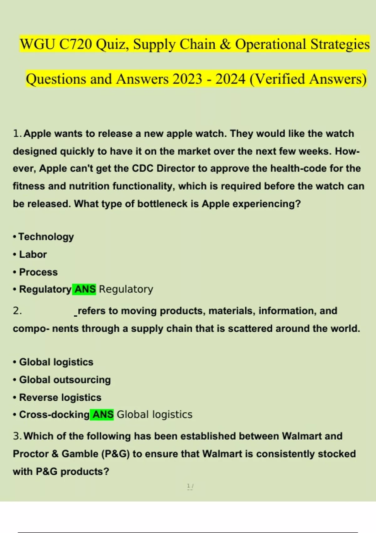 WGU C720 Quiz, Supply Chain & Operational Strategies () (Verified by Expert) WGU C720 Quiz, Supply Chain & Operational Strategies () (Verified by Expert)