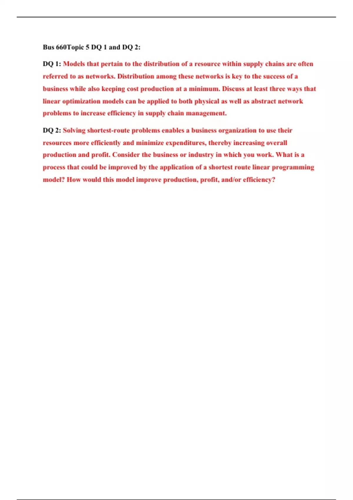 BUS 660 Topic 5 DQ 1, DQ 2