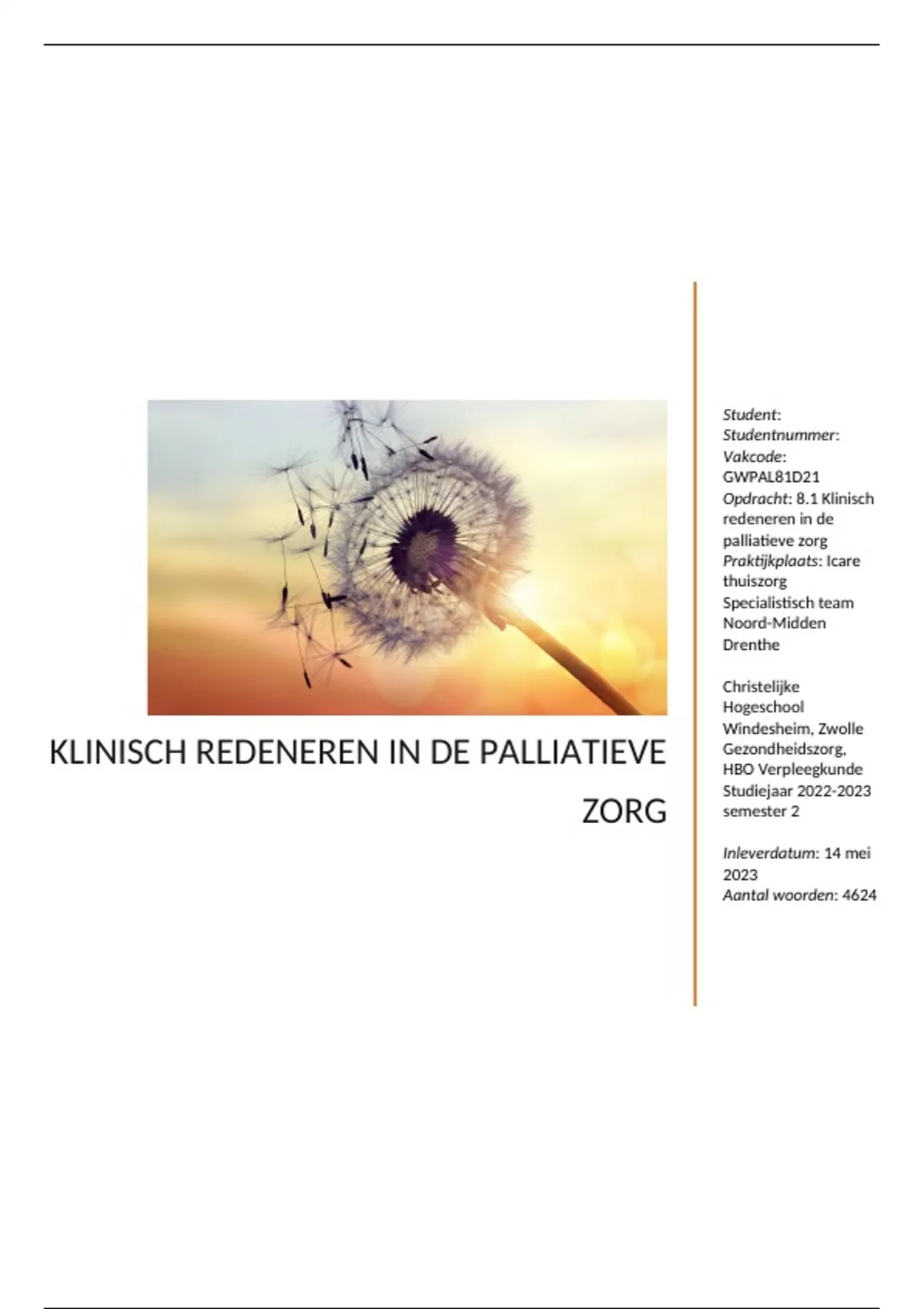 van de minor palliatieve zorg ‘Klinisch redeneren in de palliatieve zorg’ geschreven door.., voltijd