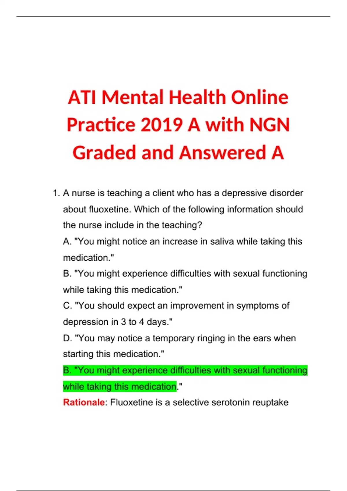 ATI Mental Health Online Practice 2019 A with NGN Graded and Answered A