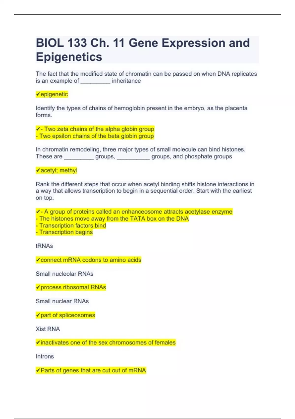 BIOL 133 Ch. 11 Gene Expression and Epigenetics