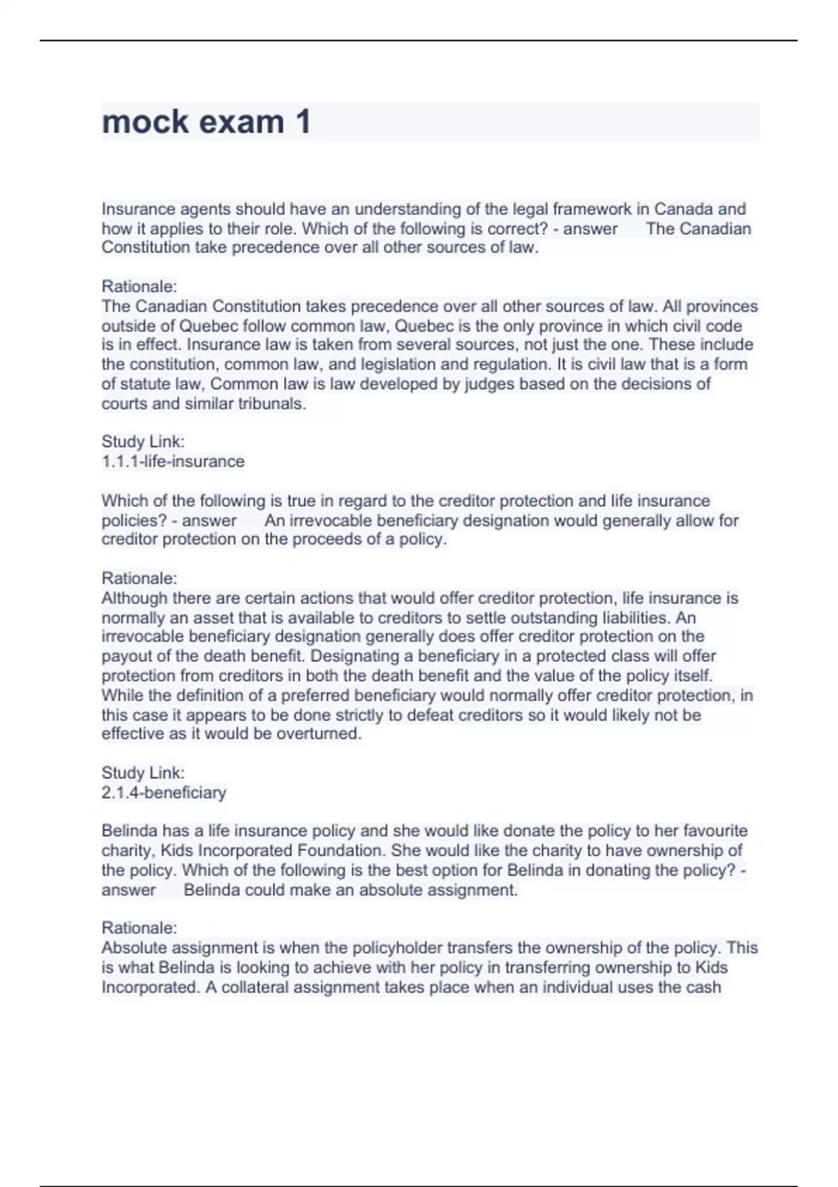 mock exam 1 Questions with correct Answers