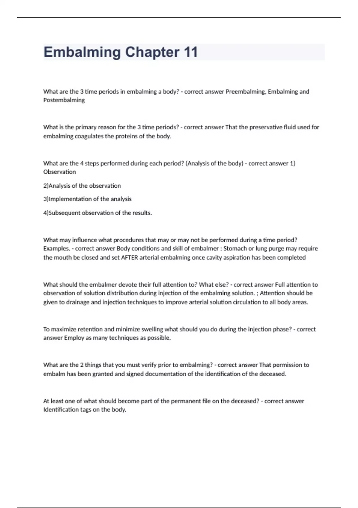Embalming Chapter 11 question n answers graded A+ 2023