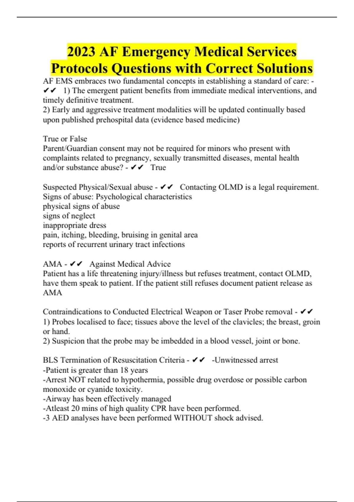 2023 AF Emergency Medical Services Protocols Questions with Correct Solutions