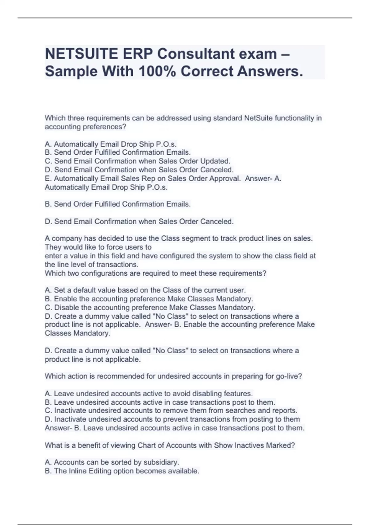 NETSUITE ERP Consultant exam – Sample With 100% Correct Answers.