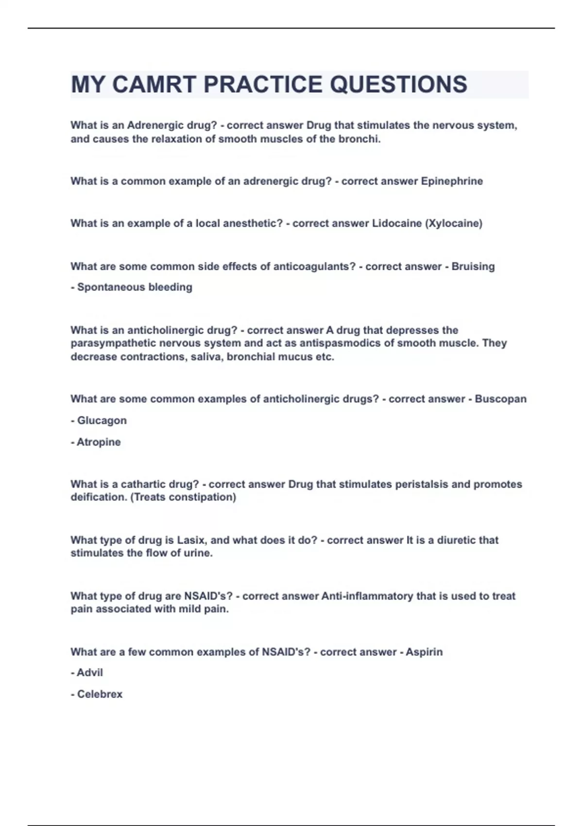 MY CAMRT PRACTICE QUESTIONS|UPDATED&VERIFIED|100% SOLVED|GUARANTEED SUCCESS
