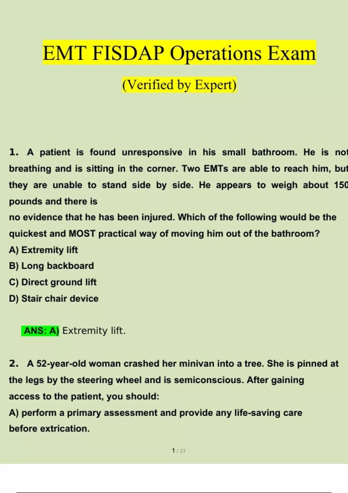 EMT FISDAP Operations Exam Questions and Answers () (Verified by Expert) EMT FISDAP Operations Exam Questions and Answers () (Verified by Expert)