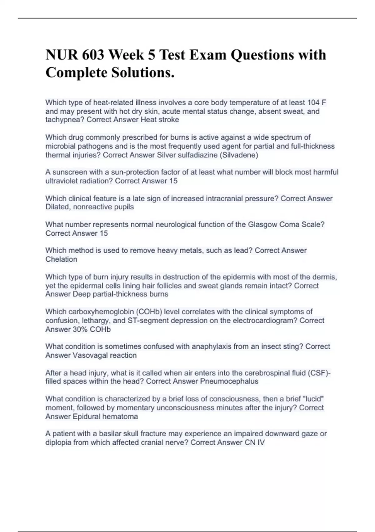 NUR 603 Week 5 Test Exam Questions with Complete Solutions.