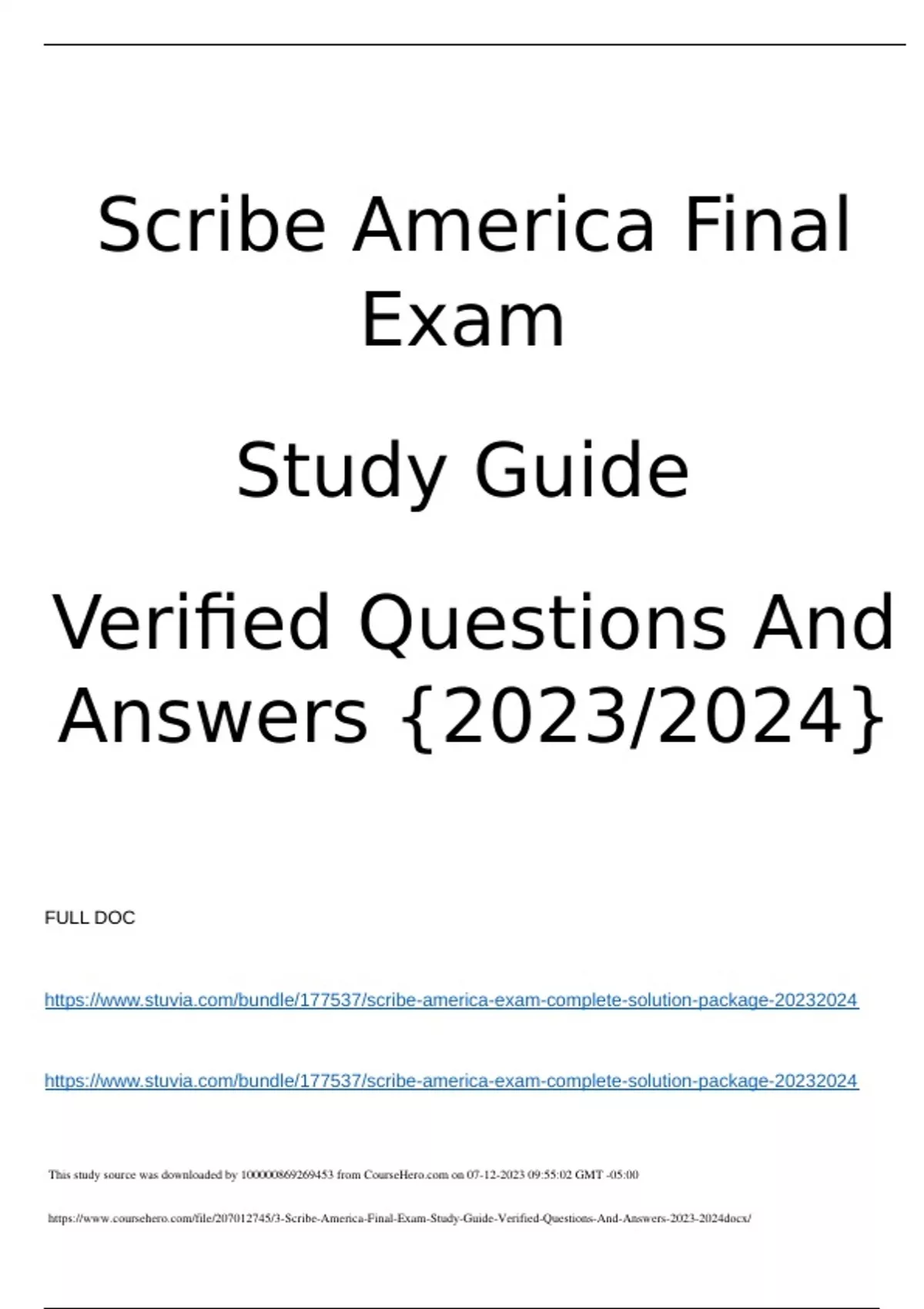 Scribe America Final ExamStudy GuideVerified Questions AndAnswers {}.