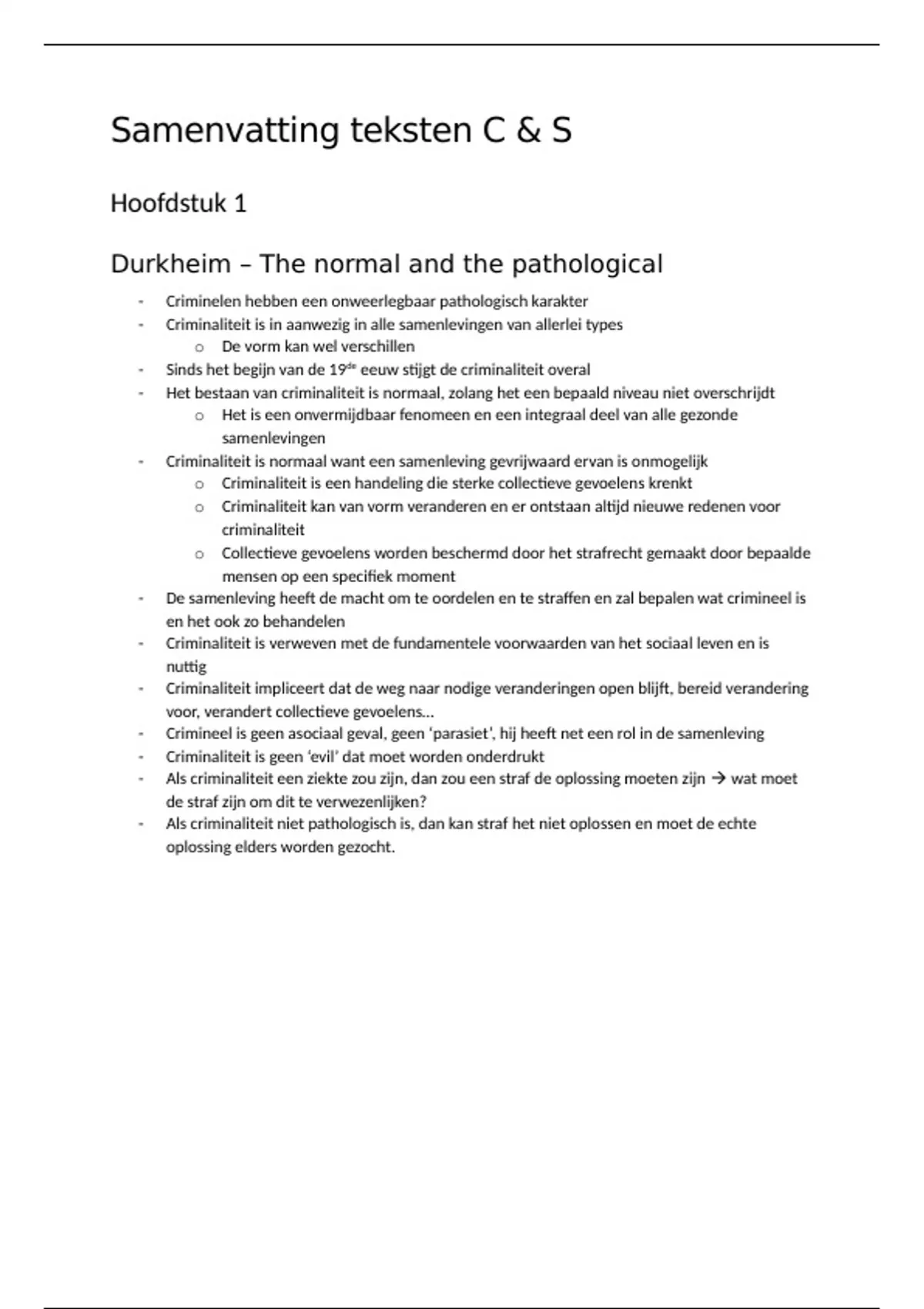 Samenvatting teksten - Criminaliteit en Samenleving (geslaagd eerste zit)