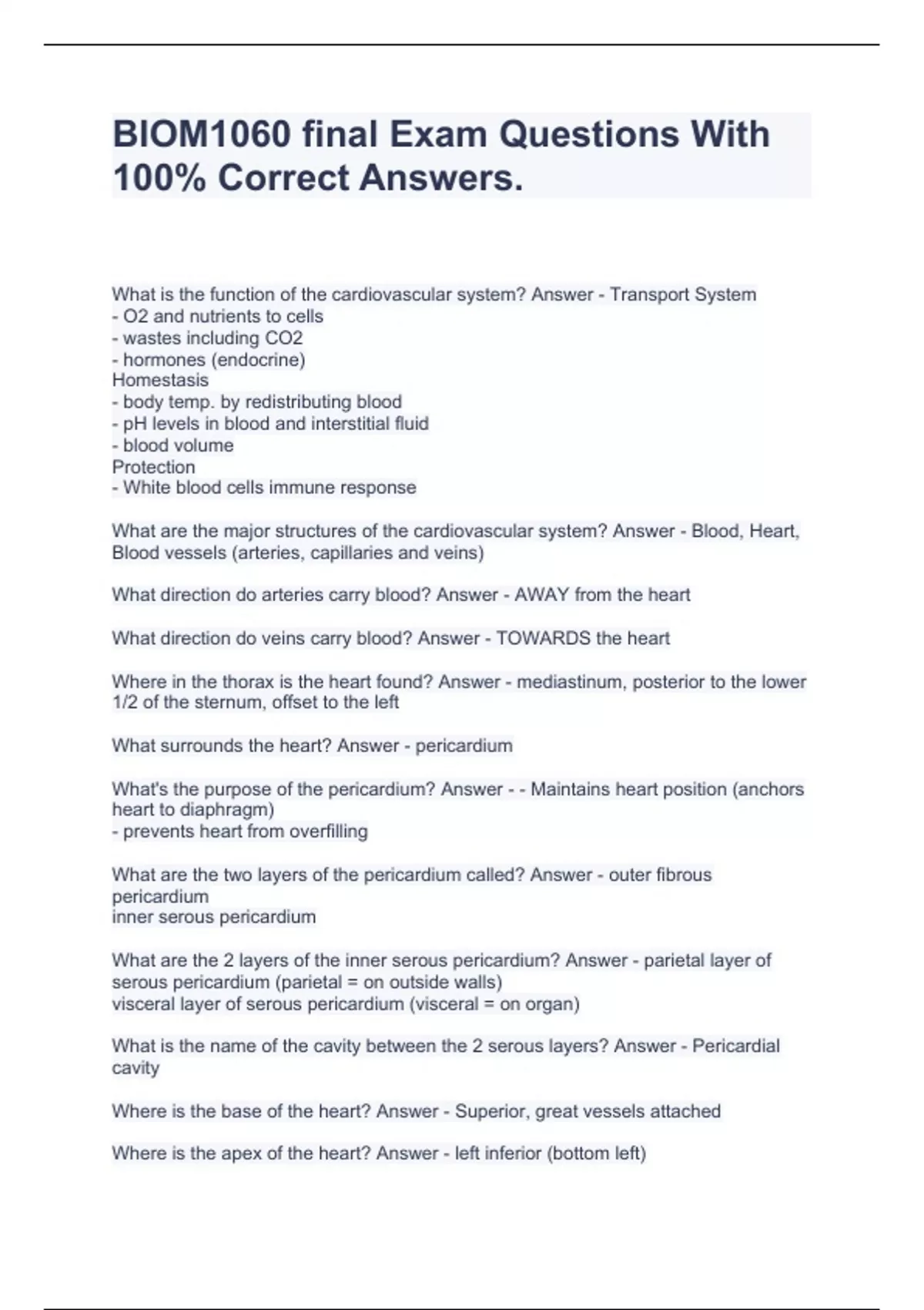 BIOM1060 Semester One Final Examination (Includes: Cardiovascular Physiology; Cardiorespiratory Anatomy; Respiratory Physiology; Electrophysiology; The ECG; Female Reproduction; Male Reproduction; Reproductive Physiology; Lifecycle Physiology; Conception;