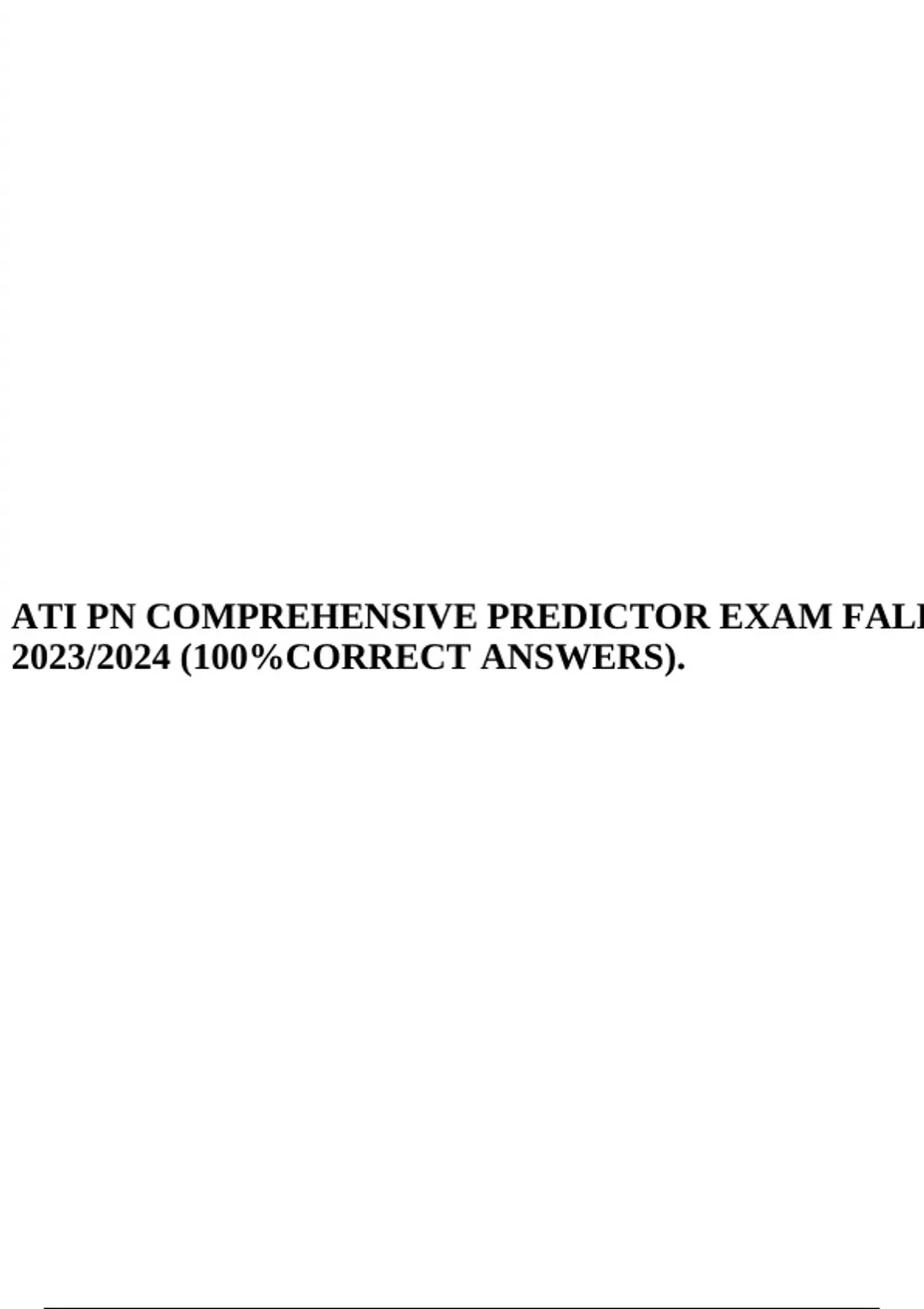 ATI PN COMPREHENSIVE PREDICTOR EXAM FALL 2023/2024 (100%CORRECT ANSWERS).