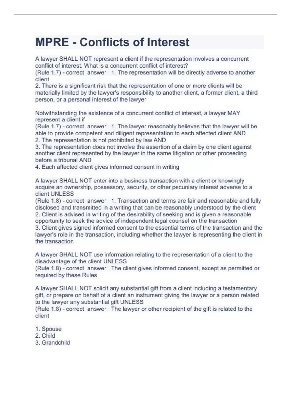 PACKAGE DEAL OF MPRE QUESTION AND ANSWERS VERIFIED TO PASS 2023