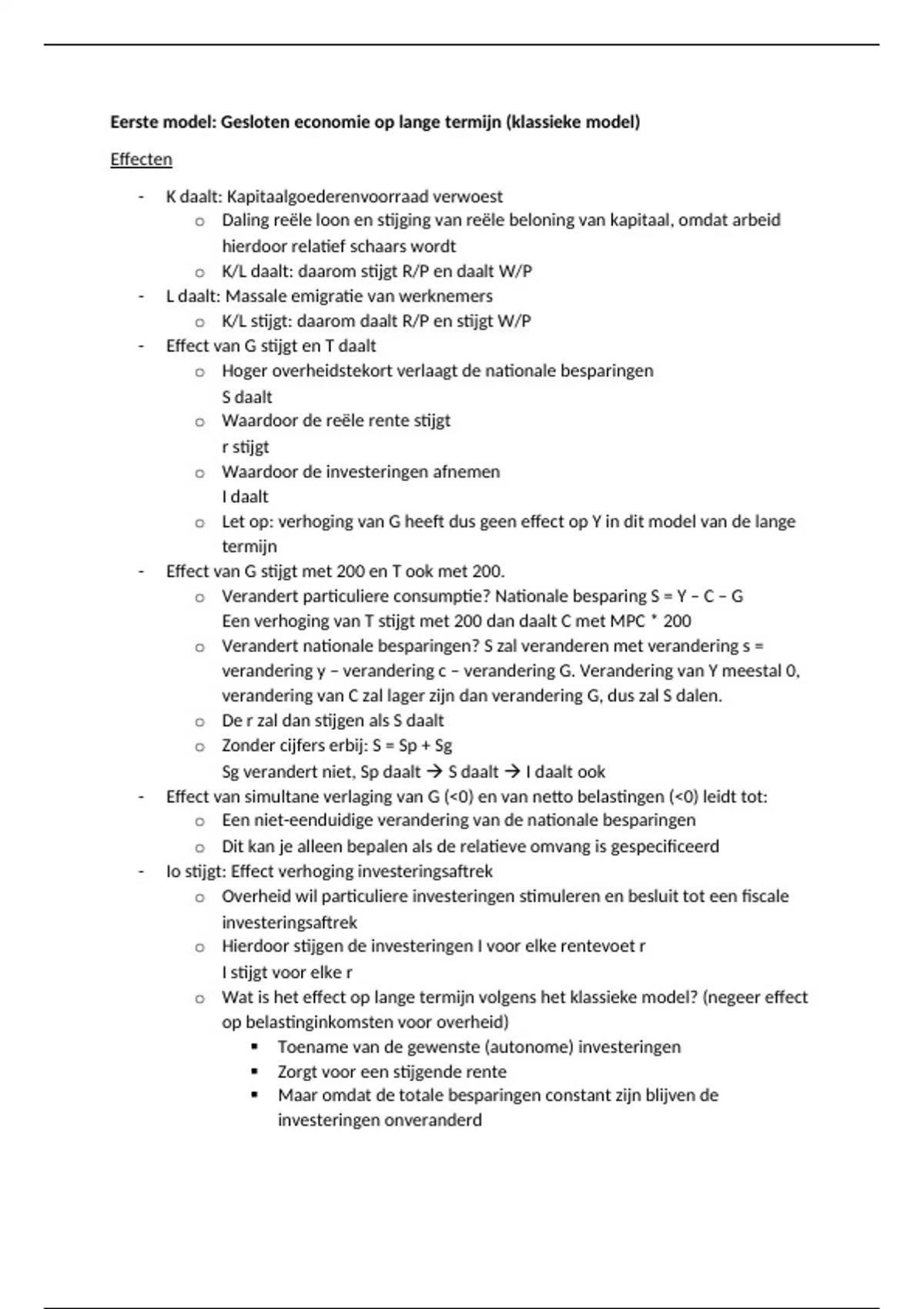o Wat is het effect op lange termijn volgens het klassieke model? (negeer effect