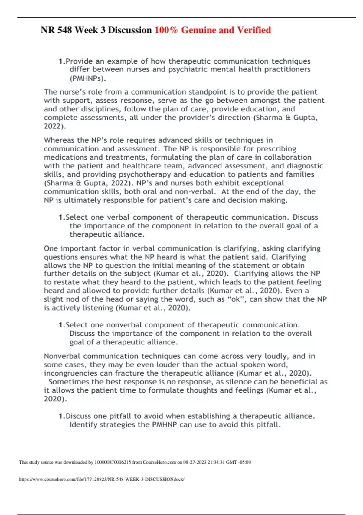 nr 548 week 3 discussion 2023 2024 100 genuine