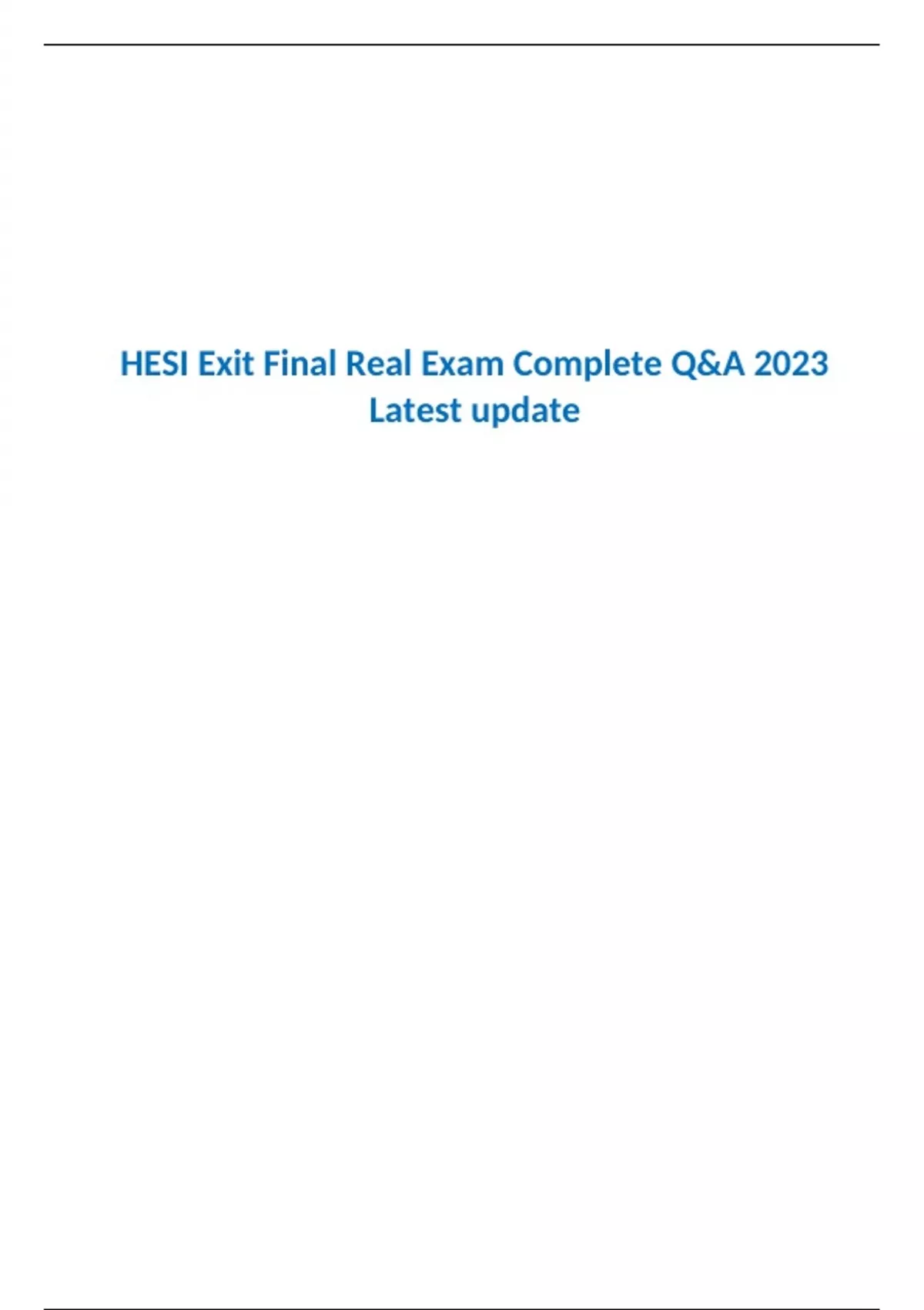 HESI Exit Final Real Exam Complete Q&A 2023 Latest update