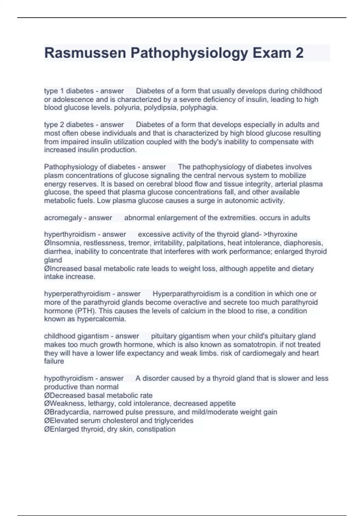 Rasmussen Pathophysiology Exam 2 Questions with correct Answers