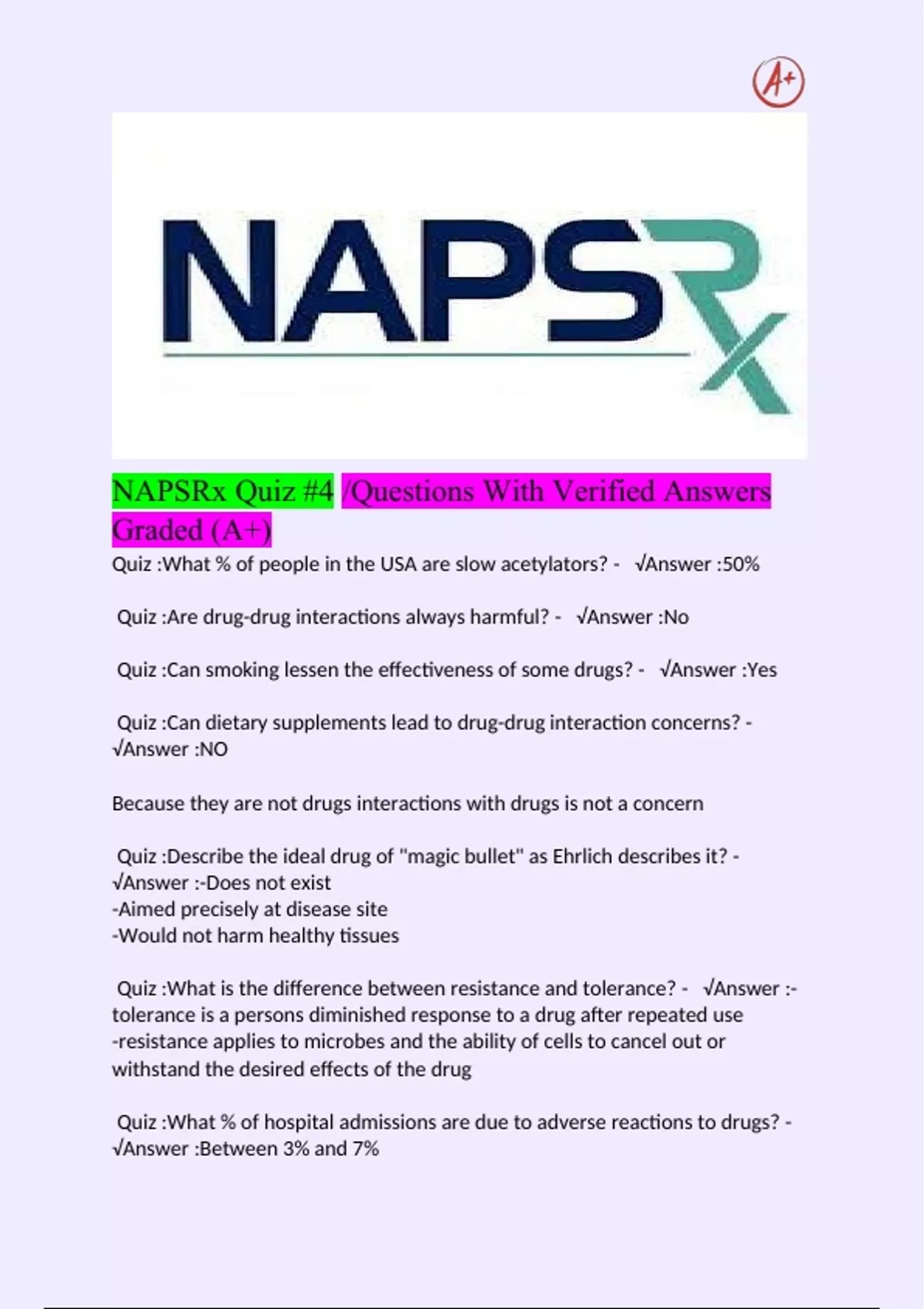 Quiz :Are drug-drug interactions always harmful? - √Answer :No