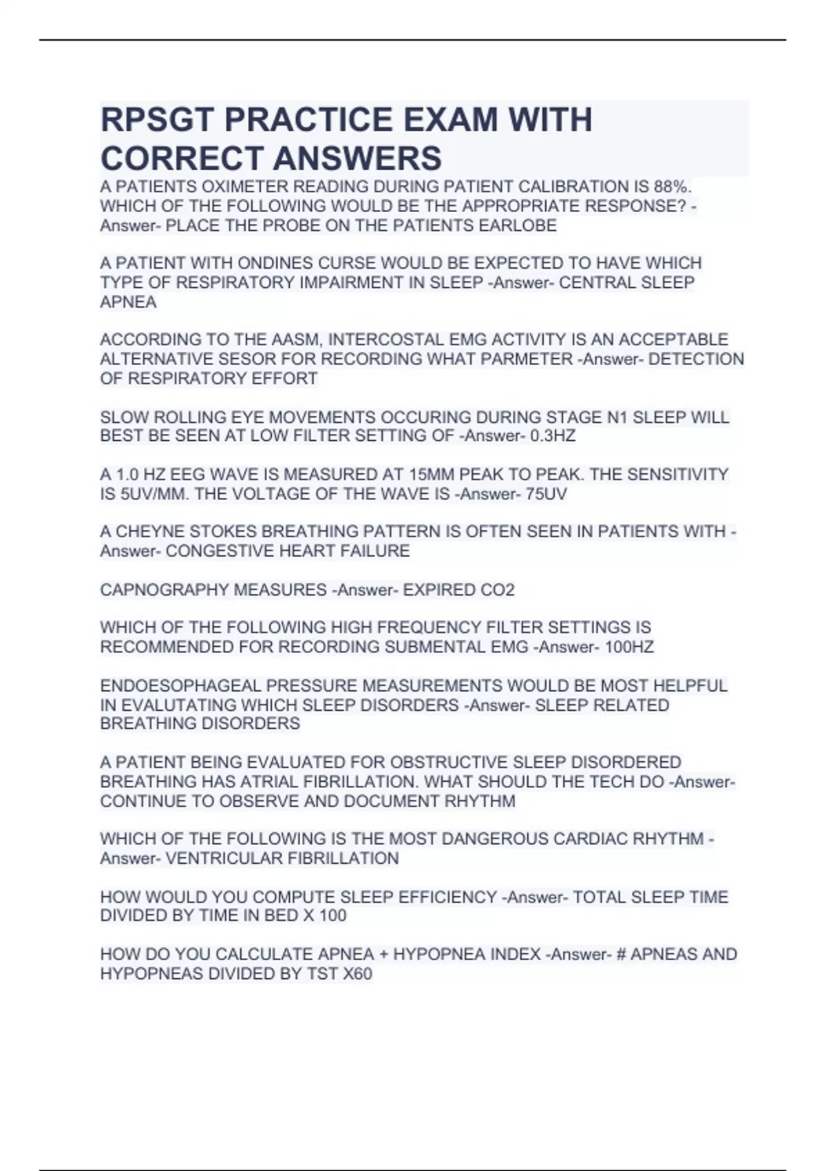 RPSGT PRACTICE EXAM WITH CORRECT ANSWERS