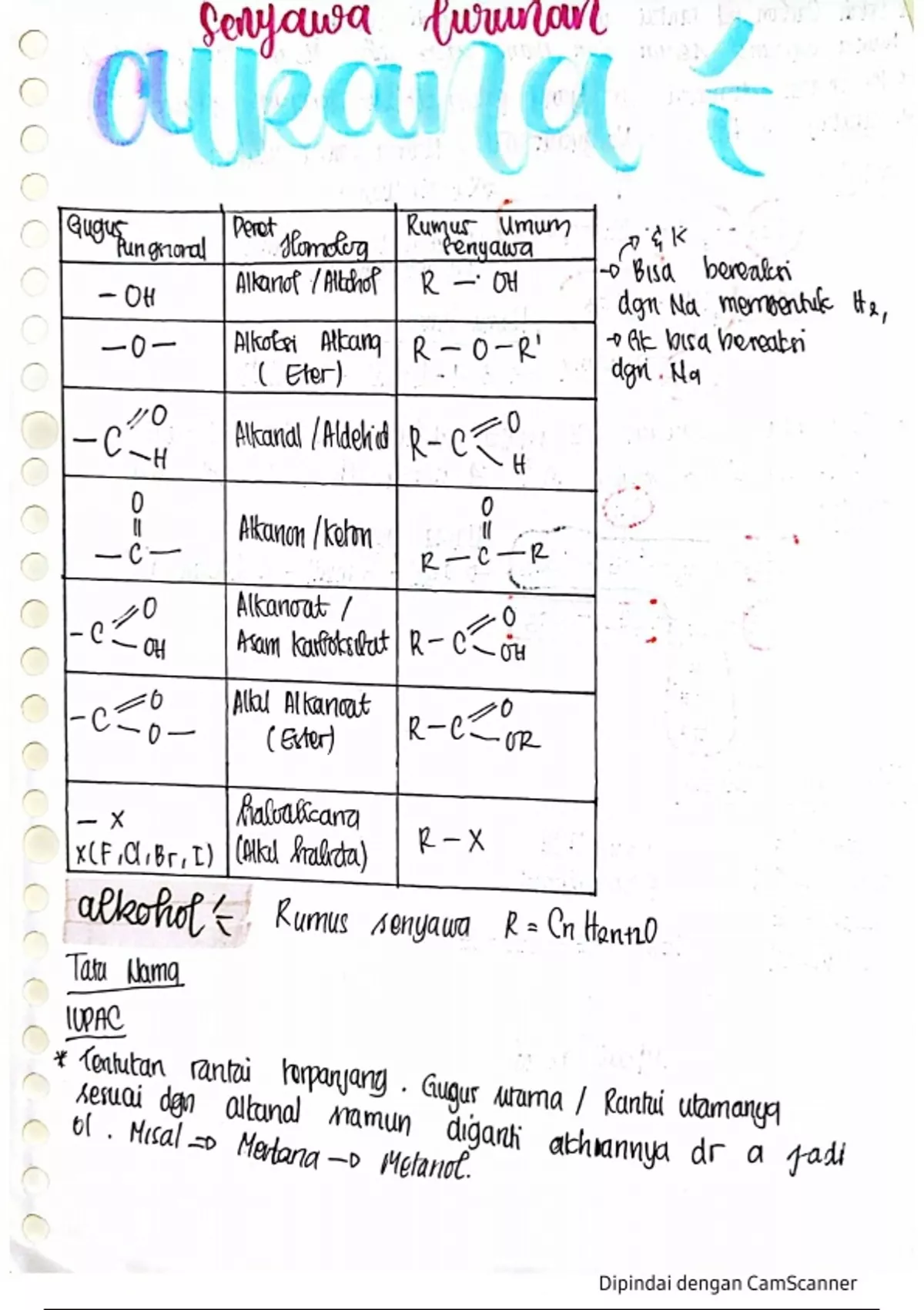 Catatan yang berisi tentang Senyawa Turunan Alkana secara lengkap dan mudah dipahami.