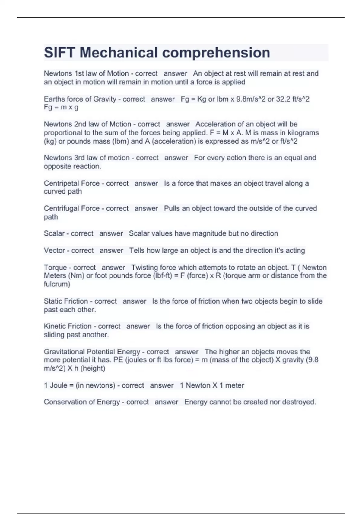 SIFT Mechanical comprehension Question and answers 100% correct 2023