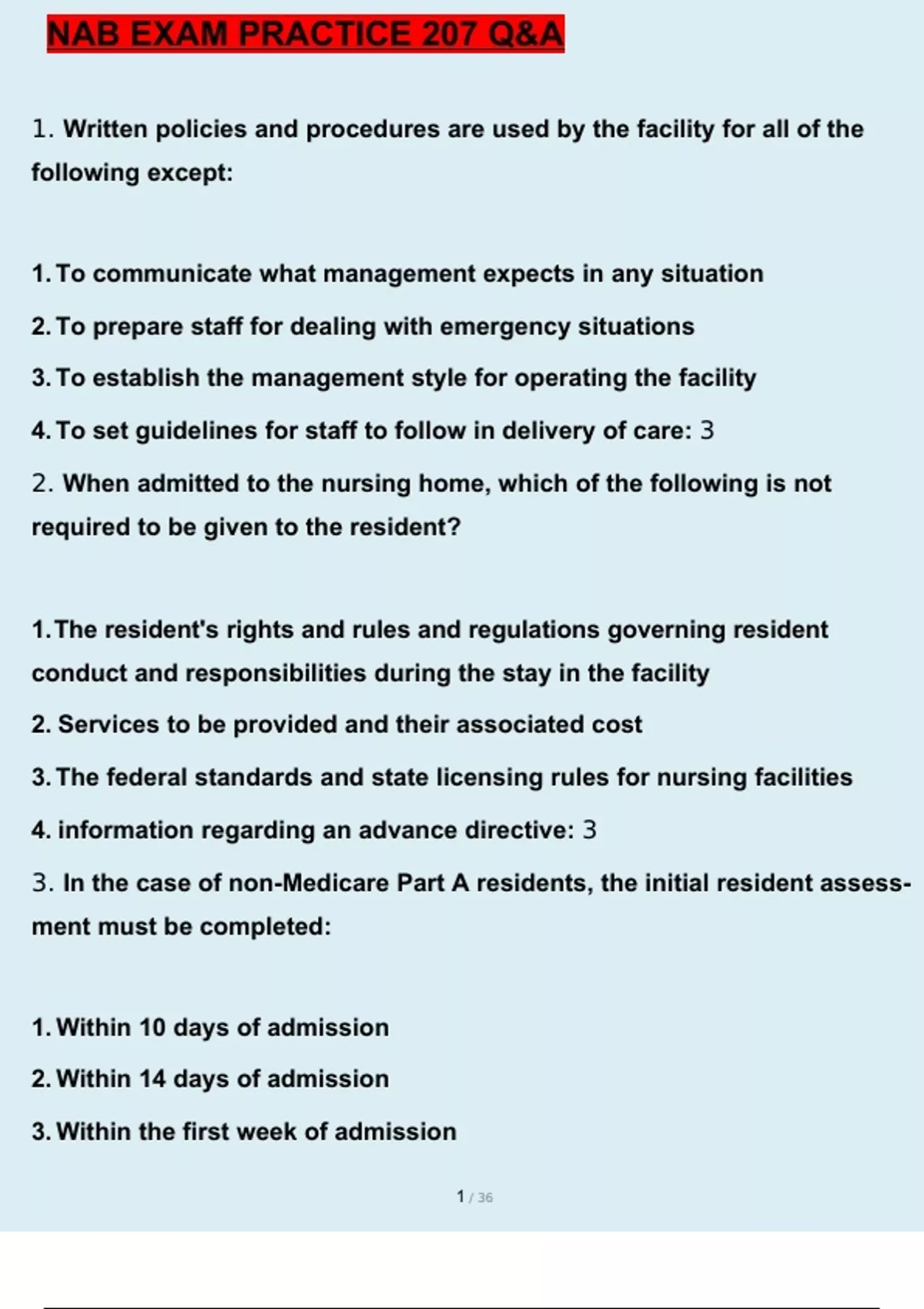 NAB EXAM PRACTICE 207 QUESTIONS AND ANSWERS GRADED A+