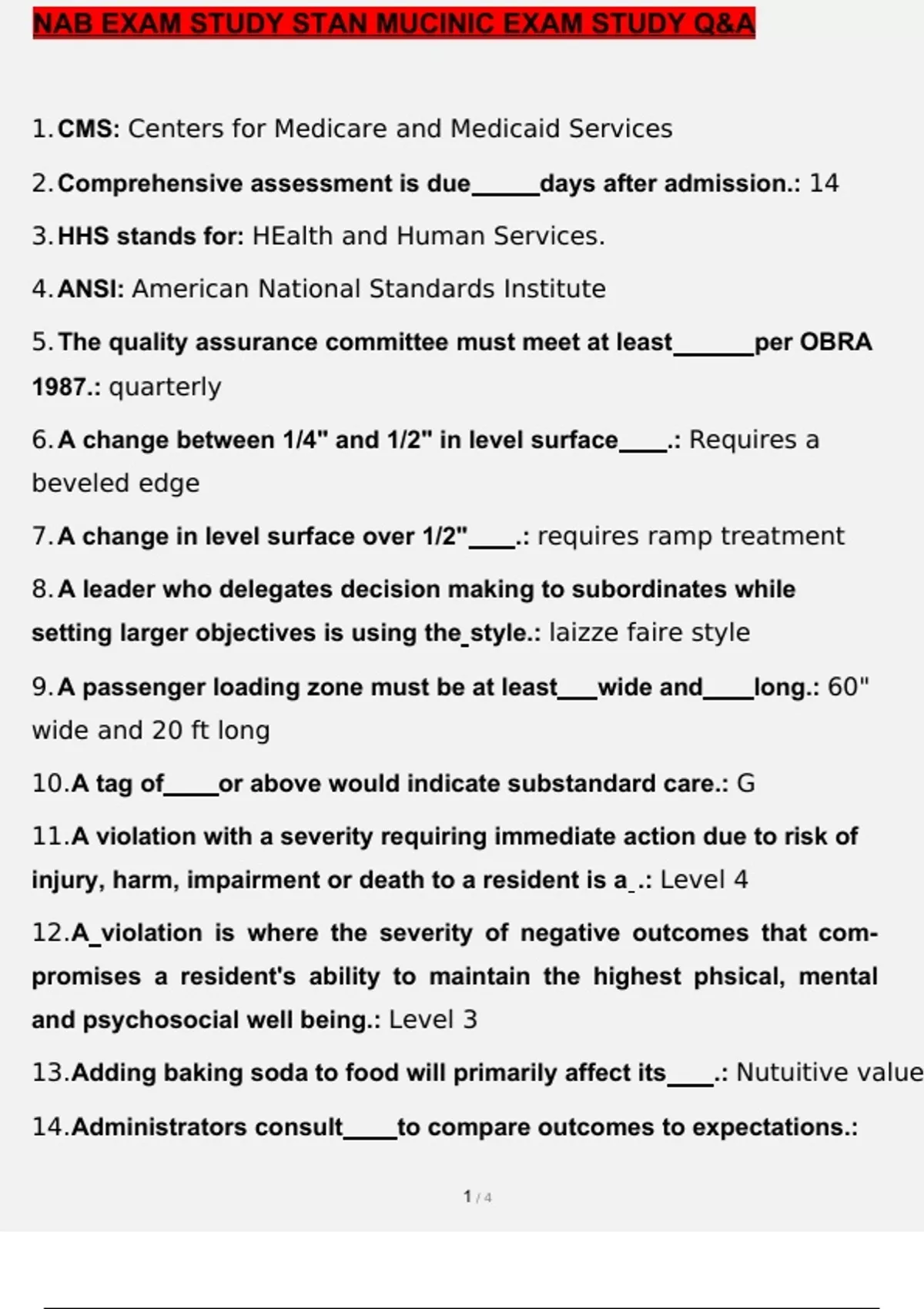 NAB EXAM STUDY STAN MUCINIC EXAM STUDY QUESTIONS AND ANSWERS GRADED A+