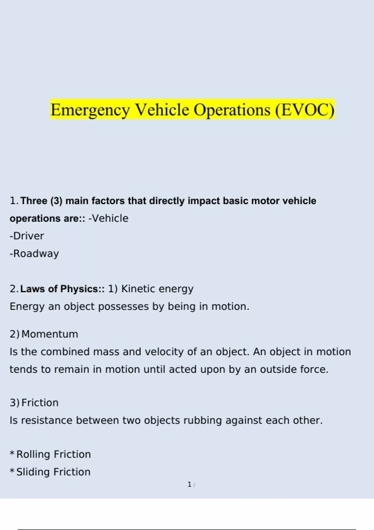 Emergency Vehicle Operations (EVOC) Study Guide (Verified) Emergency Vehicle Operations (EVOC) Study Guide (Verified)