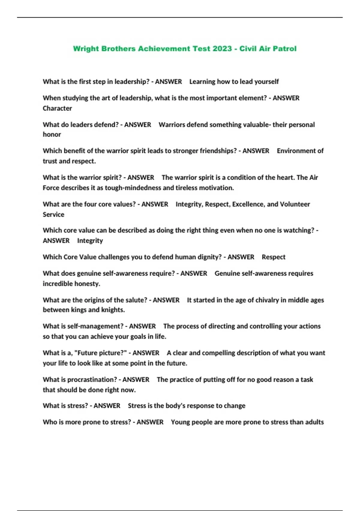 Wright Brothers Achievement Test 2023 - Civil Air Patrol ...