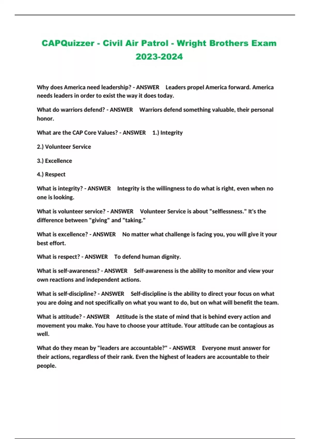 Civil Air Patrol Packaged Exams 2023-2024