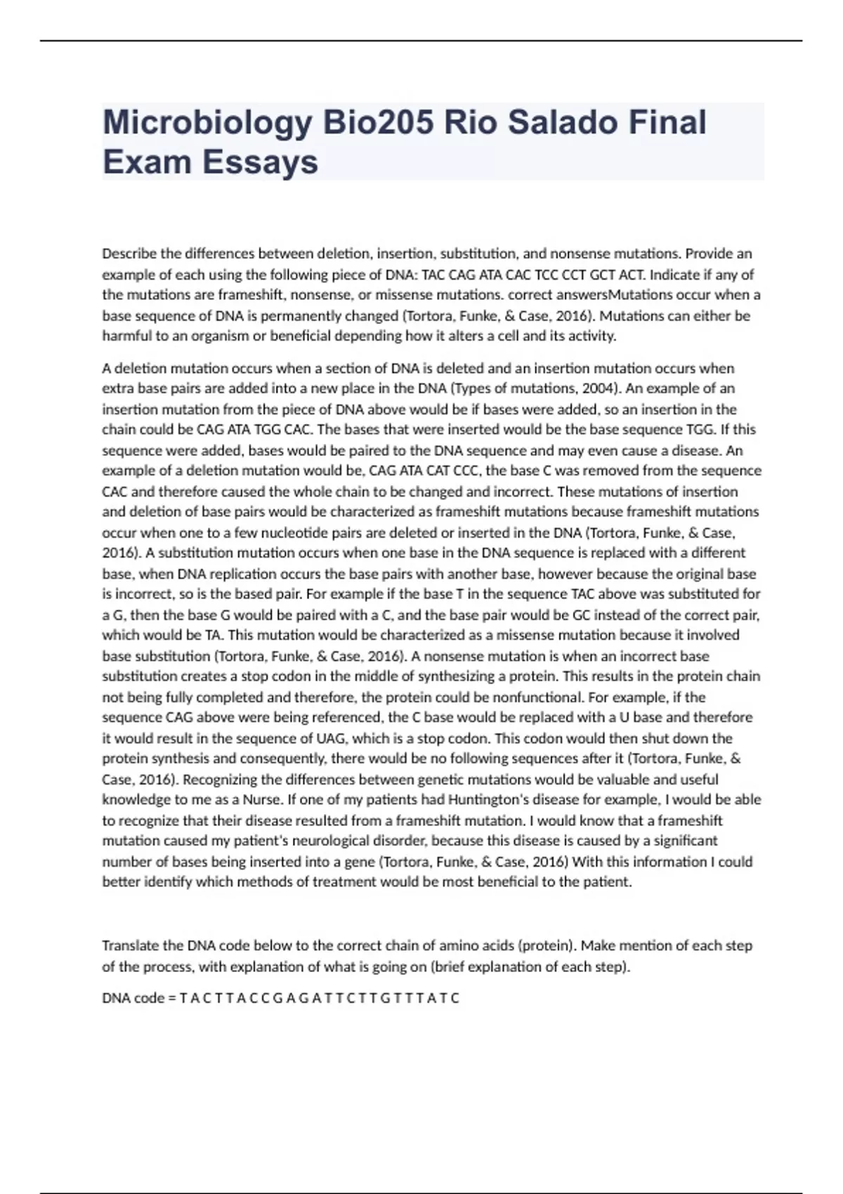 Microbiology Bio205 Rio Salado Final Exam Essays 2023 with 100% correct answers