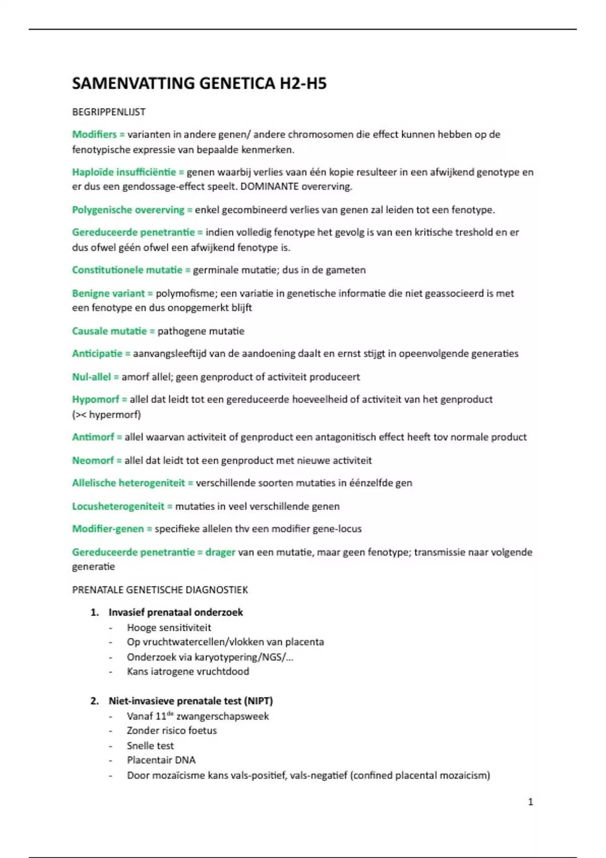 SAMENVATTING GENETICA H2-H5