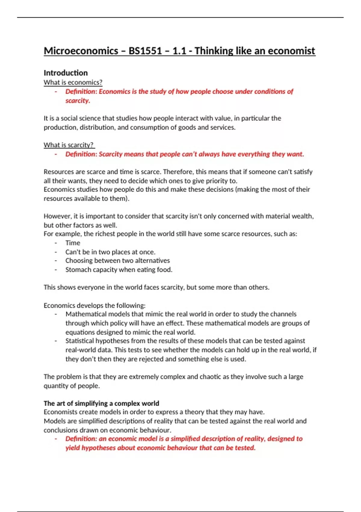 - Definition: an economic model is a simplified description of reality, designed to