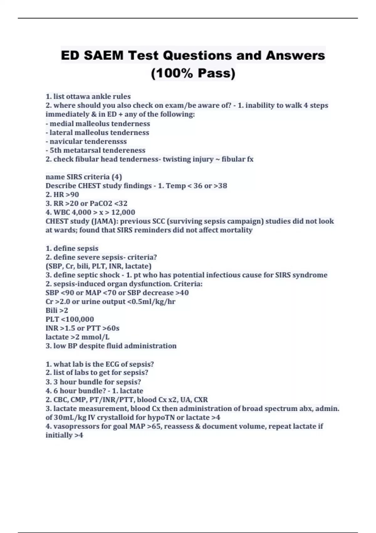 SAEM Examinations Study Bundle (Latest 2023 - 2024) Graded A+