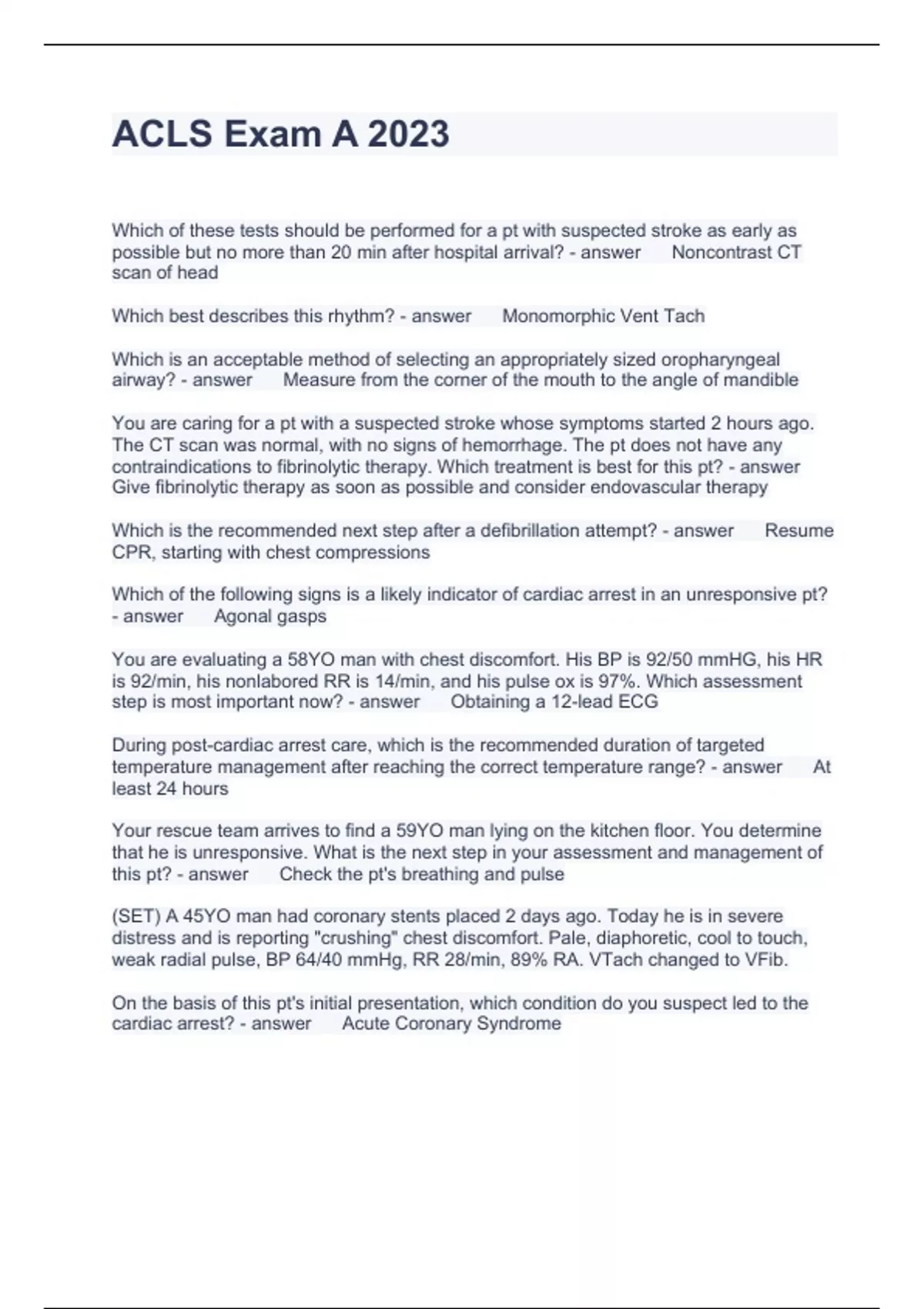 Exam of 5 pages for the course AHA ACLS at AHA ACLS (ACLS Exam A 2023)