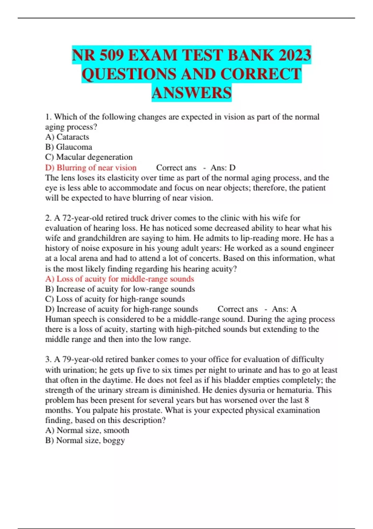 nr 509 exam test bank 2023 questions and correct a
