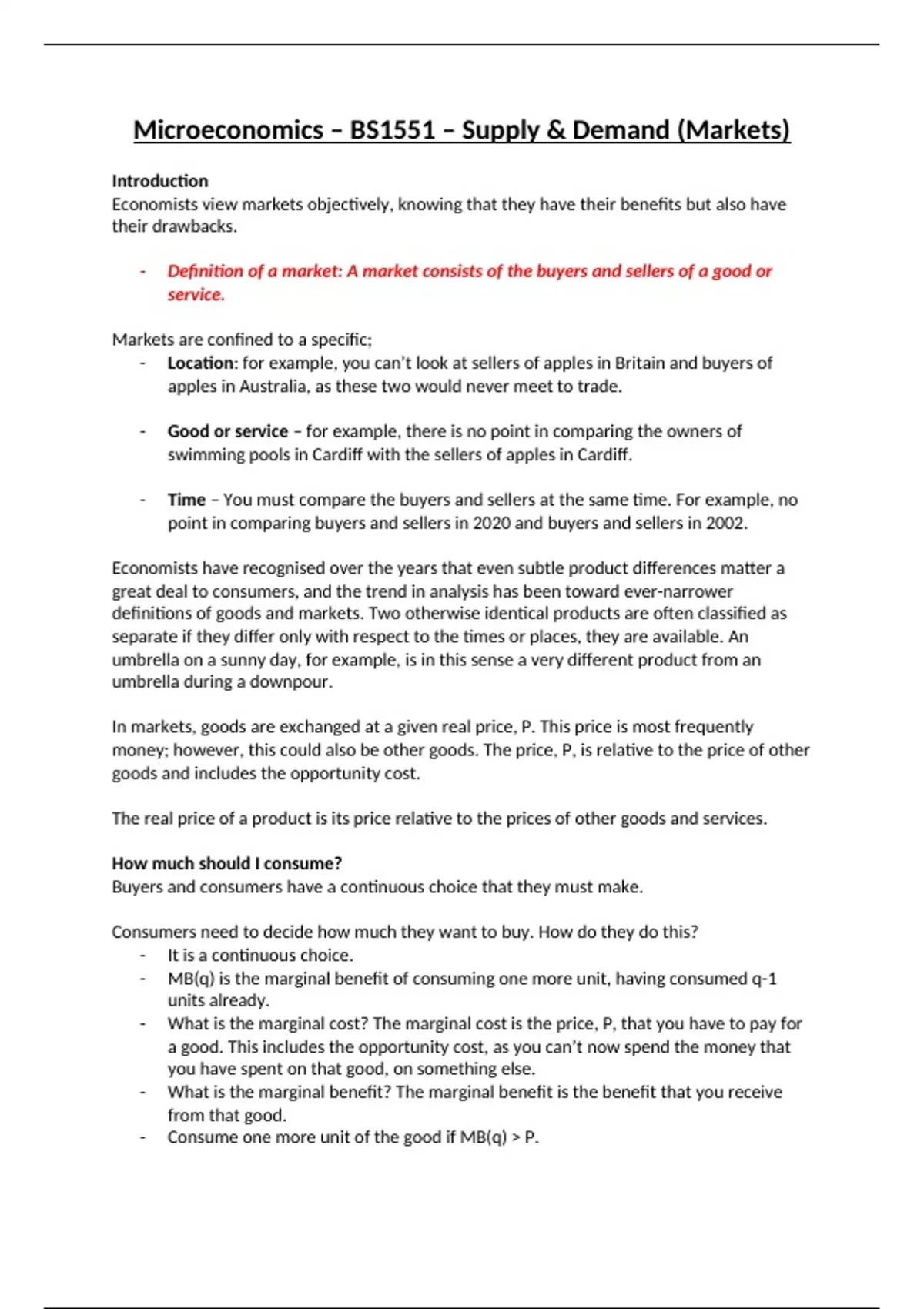 Microeconomics - BS1551 - 1.2 - Supply & Demand