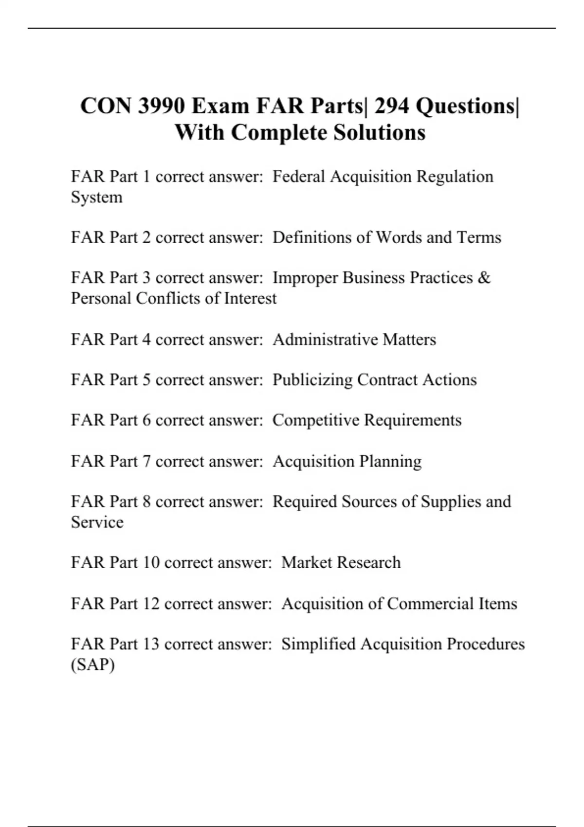 CON 3990 Exam FAR Parts| 294 Questions| With Complete Solutions