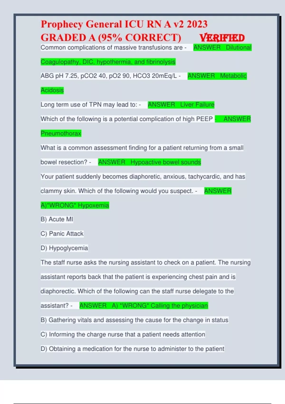Prophecy General ICU RN A v2 2023 GRADED A (95% CORRECT) VERIFIED