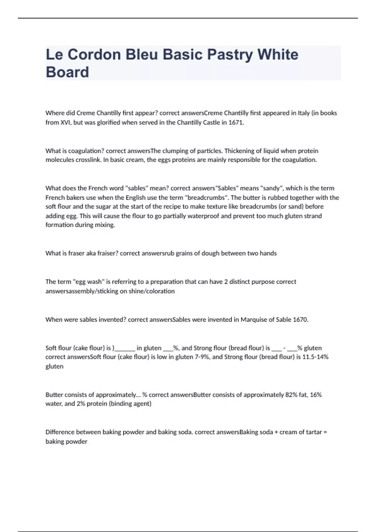 Le Cordon Bleu Basic Pastry White Board exam 2023 with correct answers