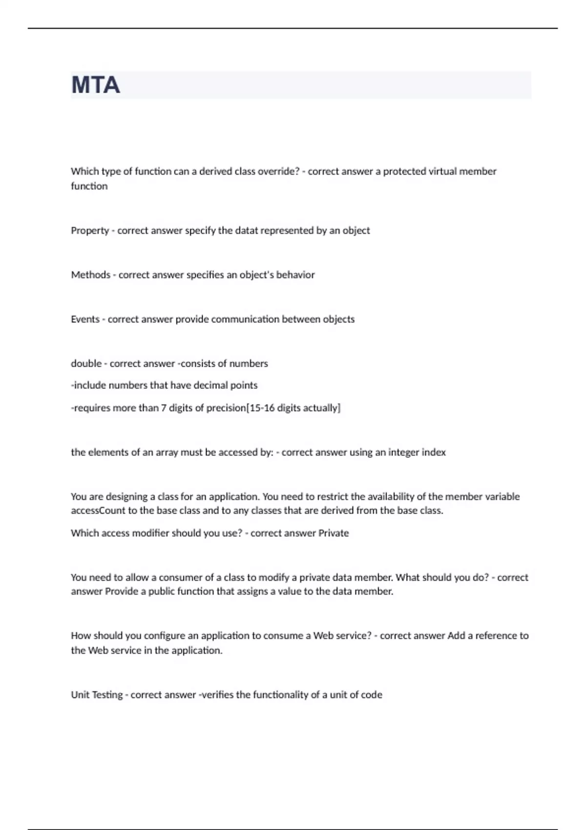 MTA questions with 100% correct answers 2023