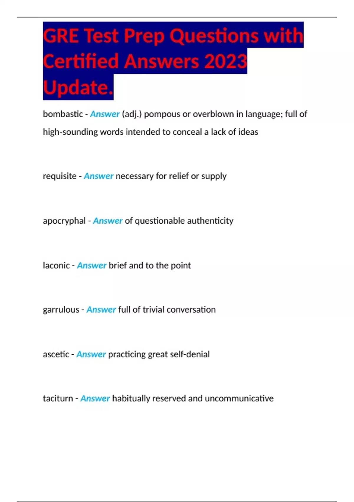 GRE Test Prep Questions with Certified Answers 2023 Update.