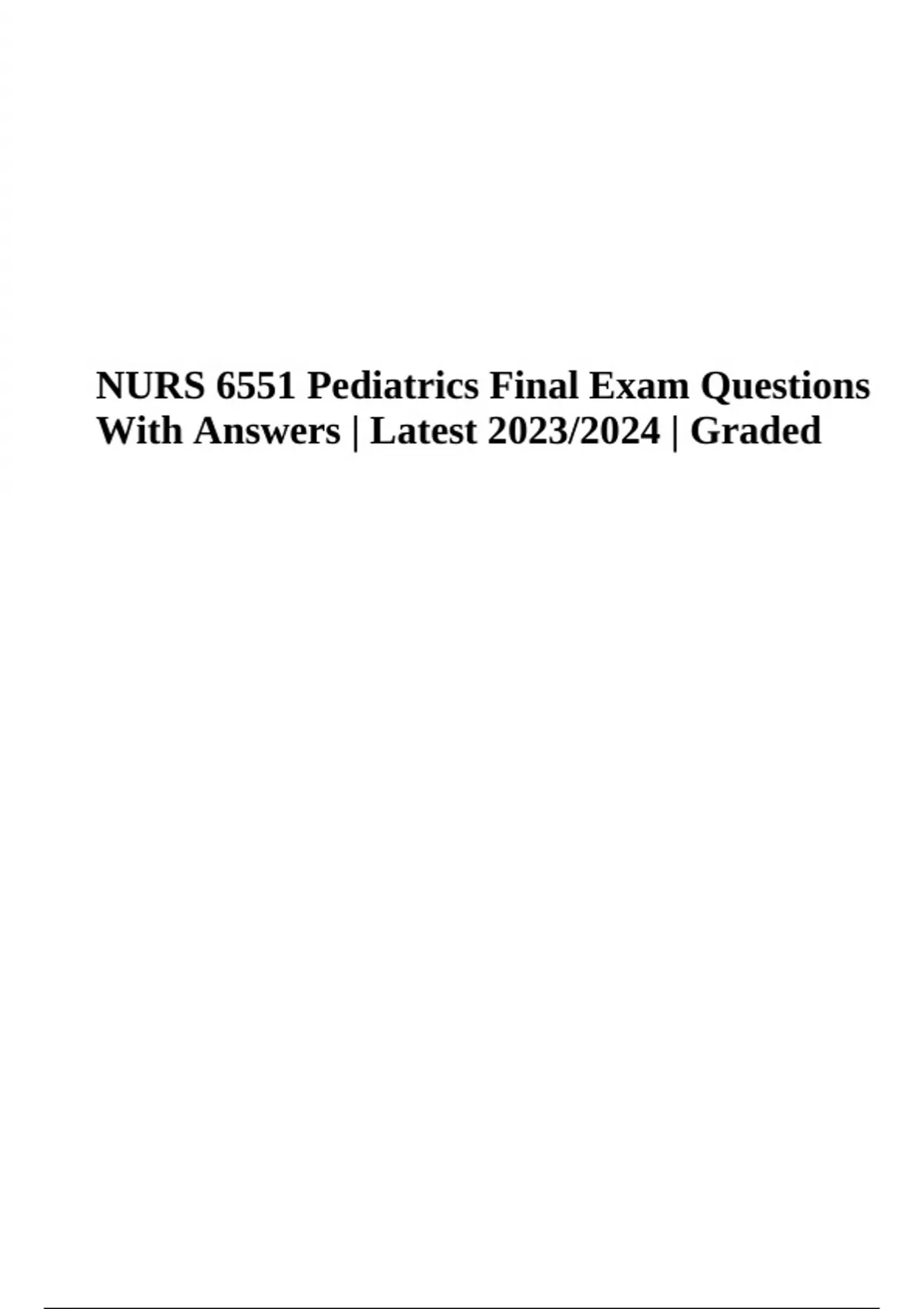 NURS 6551 Pediatrics: Final Exam Questions and Answers | Latest 2023/2024 | Graded A+