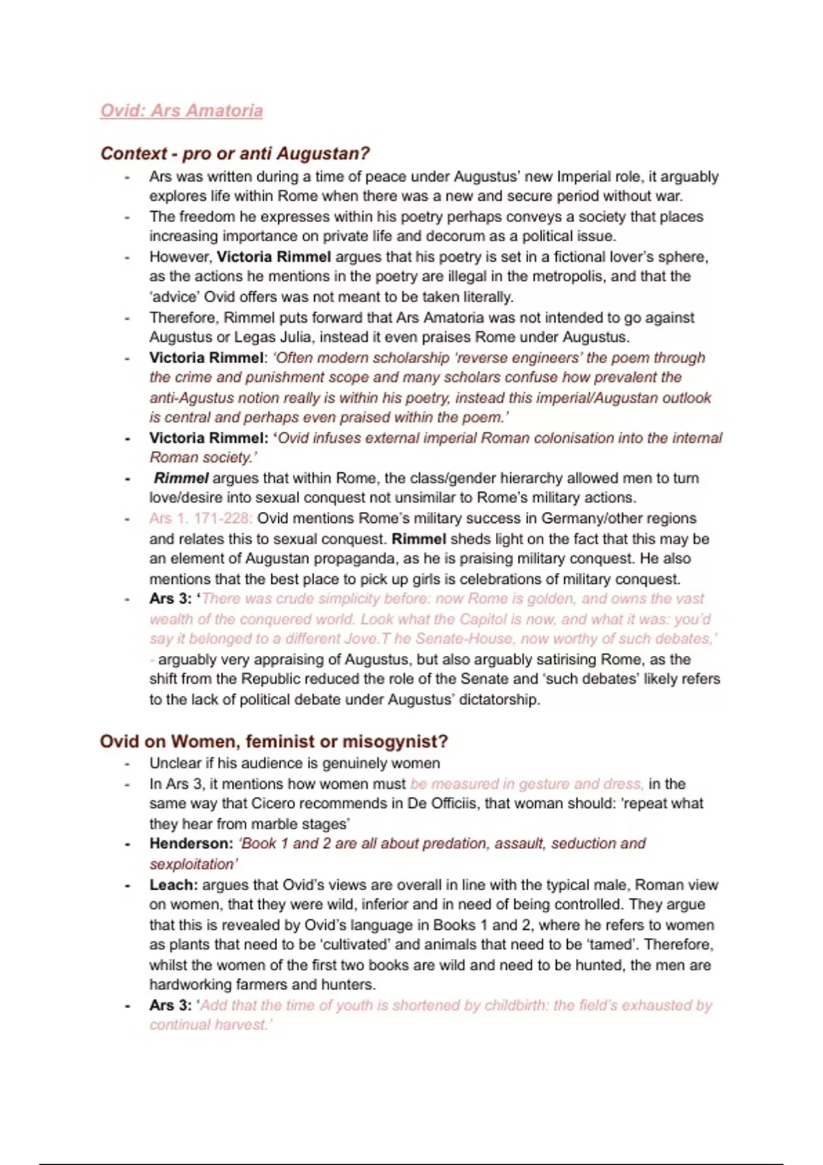 - Leach: argues that Ovid’s views are overall in line with the typical male, Roman view