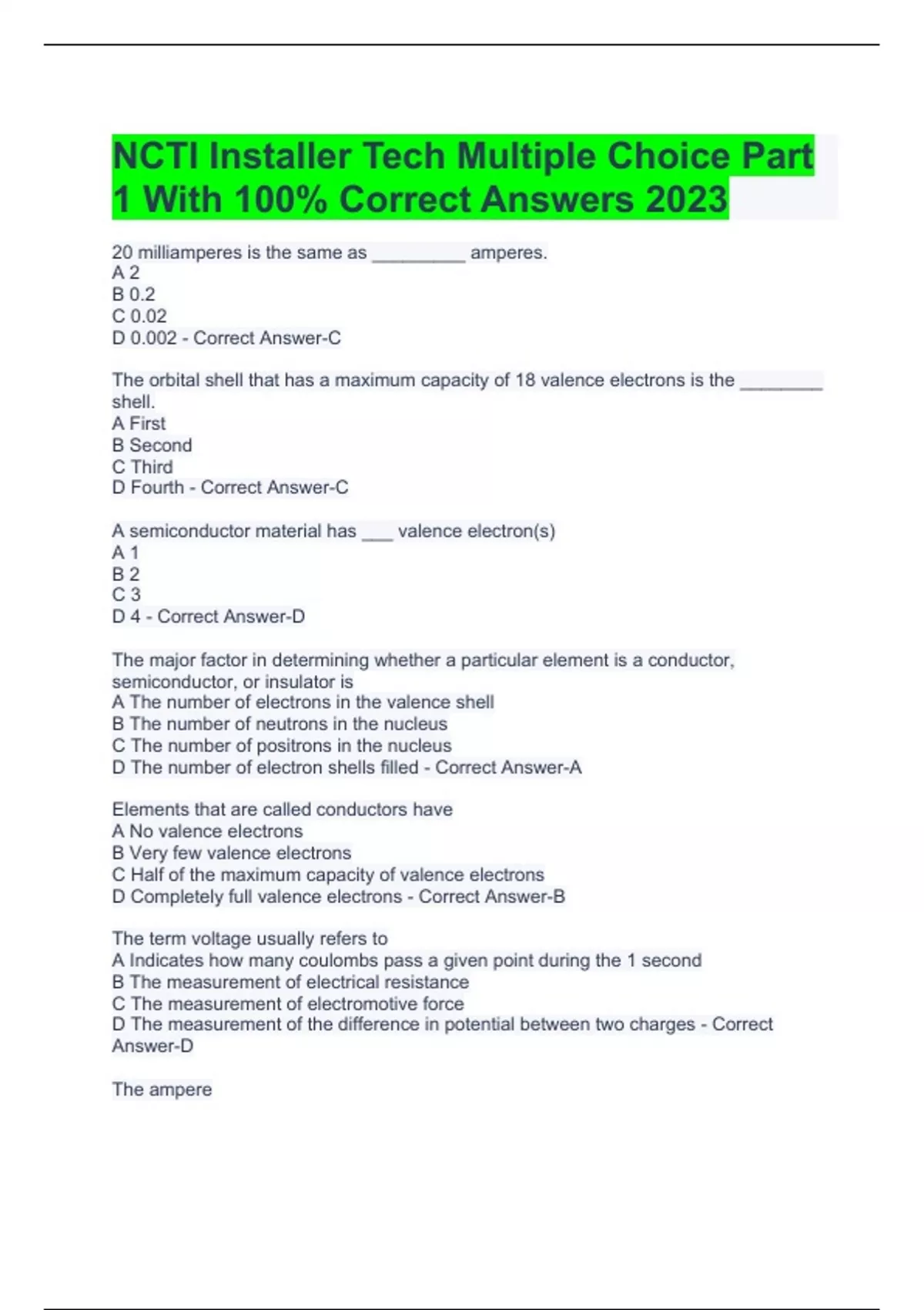 wire - Correct Answer-D