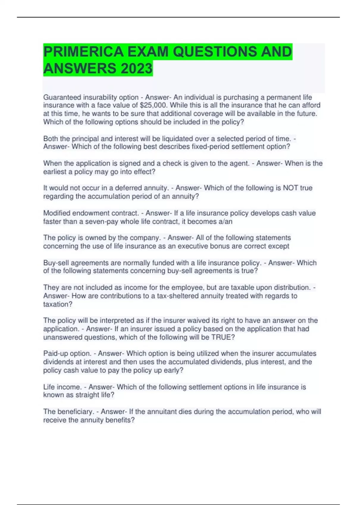 PRIMERICA EXAM QUESTIONS AND ANSWERS 2023
